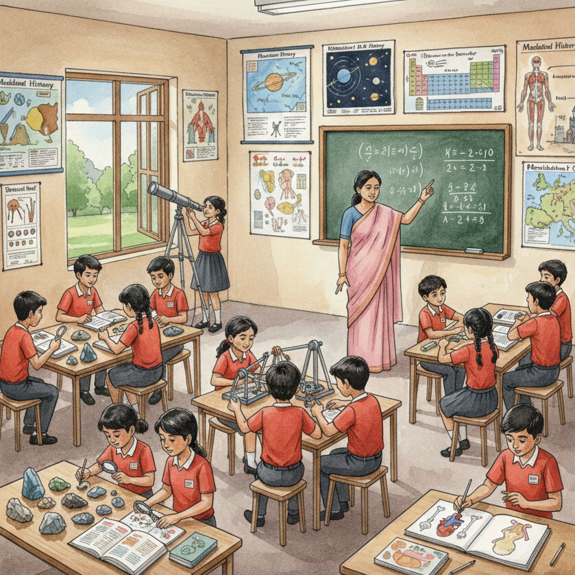 Math, astronomy, minerals, human body, mechanics, medieval history |
