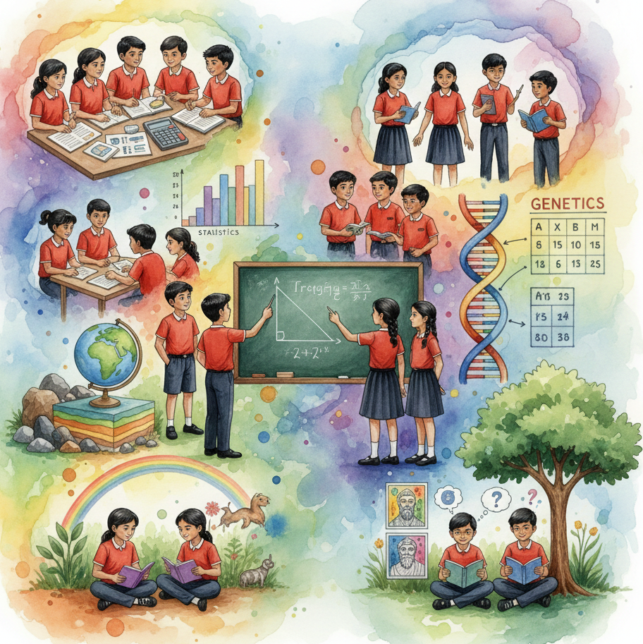 Trigonometry, statistics, genetics, earth sciences, ecology, philosophy |