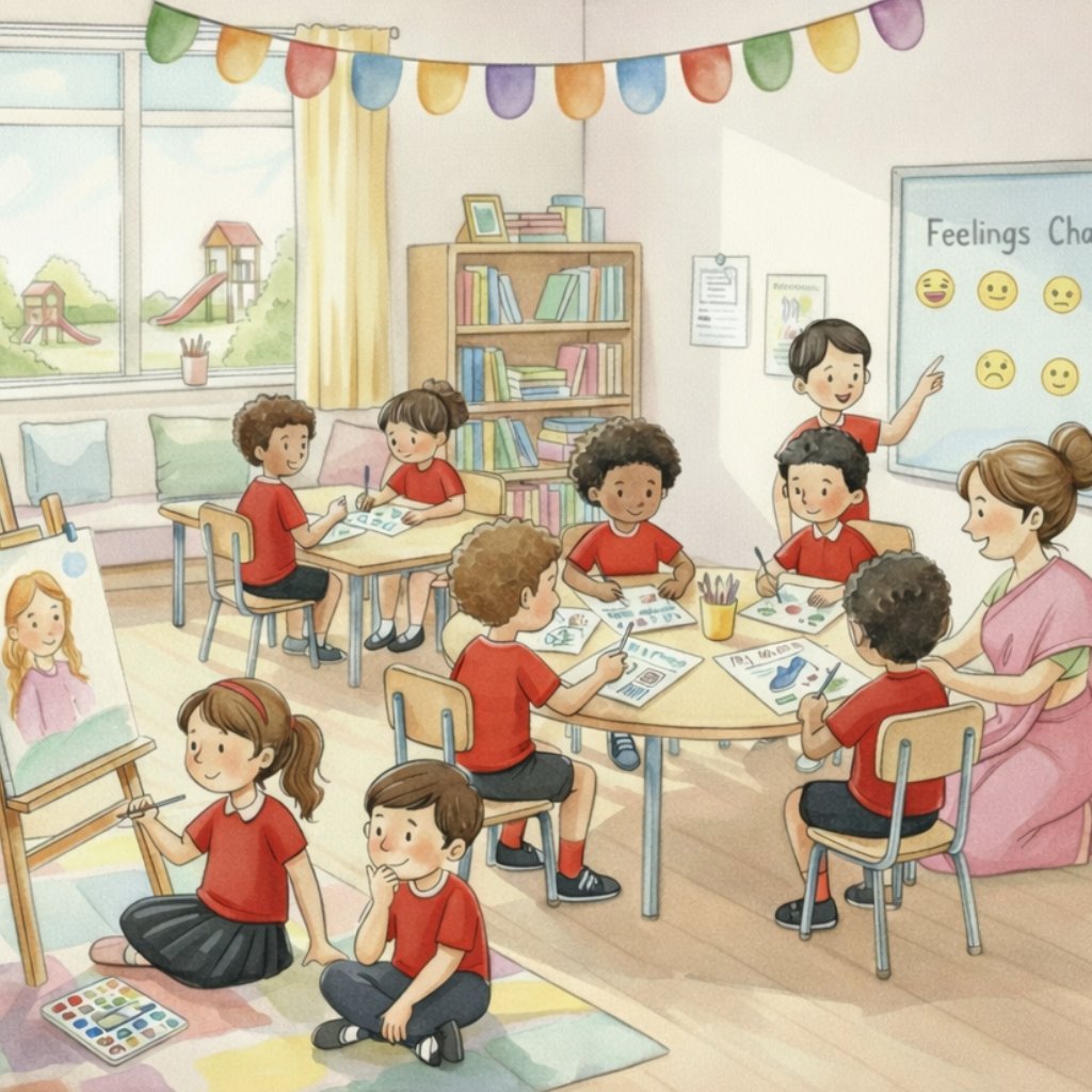 Through talking, music, play, arts, drama, craft, and clay activities |